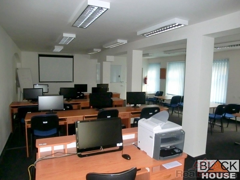Prodej komplexu kancelářských budov s nádvořím v historickém centru města Žatec. Možnost i pronájmu jednotlivých kanceláří. Jedná se o dva domy s č. p. Přední dům se zastavěnou plochou 300 m2, slouží v současné době jako kancelářská budova. V přízemí domu se nachází 6 kanceláří s kuchyňkou a sociálním zázemím. V prvním patře domu je 8 kanceláří s kuchyňkou a sociálním zázemím. V půdních prostorách domu jsou prostory pro 3 bytové jednotky. Ve sklepě jsou krásné historické prostory se stavebním povolením a projektem pro vybudování restaurace. Průjezdem přes nádvoří, které slouží jako parkoviště je přístup do druhého domu, které slouží v současné době jako školicí středisko. Zastavěná plocha domu činí 148 m2. V přízemí domu nalezneme vstupní halu s recepcí, kancelář se skladovým prostorem, kuchyňku a denní místnost pro personál, sociální zázemí a větší kancelář využívanou jako učebnu. V prvním patře se nachází větší kancelář, zasedací místnost, kterou lze rozdělit na více kanceláří a sociální zázemí. Druhé patro je možné využít jako bytovou jednotku s koupelnou a toaletou s celkovou plochou 108 m2 nebo využít jako kanceláře. Půdní prostory jsou připraveny k dalšímu využití. Veškerá občanská vybavenost je v dosahu. Doporučuji prohlídku!