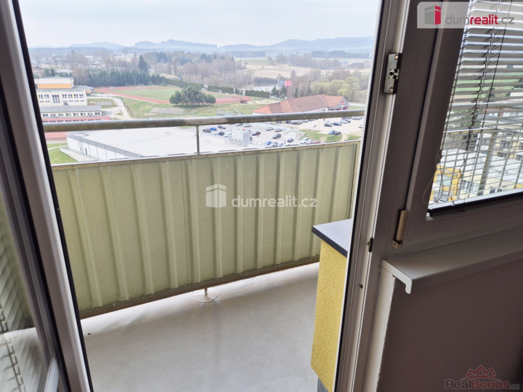 +popl. 2500, + elektřina. Kauce 20.000,- odměna RK 17.000,-., Dumrealit.cz Vám zprostředkuje pronájem bytu 3+1 s balkonem o podl.pl. 74 m, v desátém patře jedenáctipatrového panelového domu se dvěma výtahy, sídliště Na Vyhlídce, Kaplice.