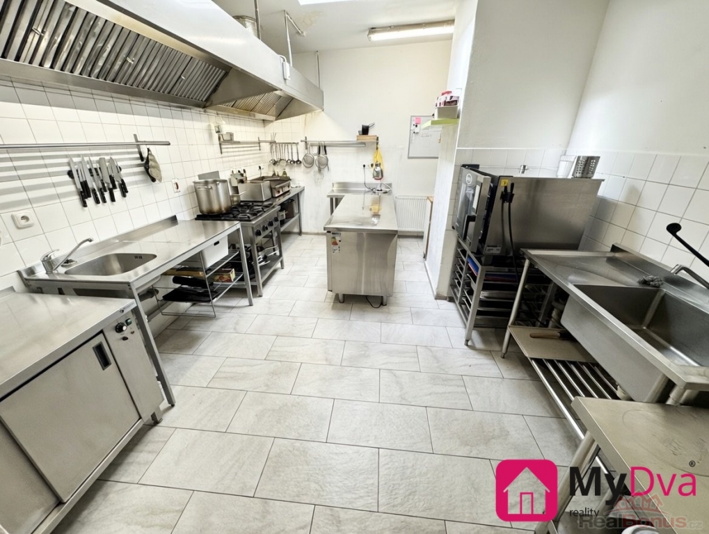 Kuchyně je kompletně vybavena profesionální gastronomickou technologií, která umožňuje okamžitý provoz bez nutnosti dalších investic. K dispozici je mimo jiné konvektomat UNOX, gril, fritéza, plynový sporák o výkonu 22 kW, chladicí pulty, digestoře se vzduchotechnikou, myčka nádobí, lednice, mrazicí boxy a další potřebné vybavení. Nechybí ani výčepní zařízení, režon na talíře a infra technologie.