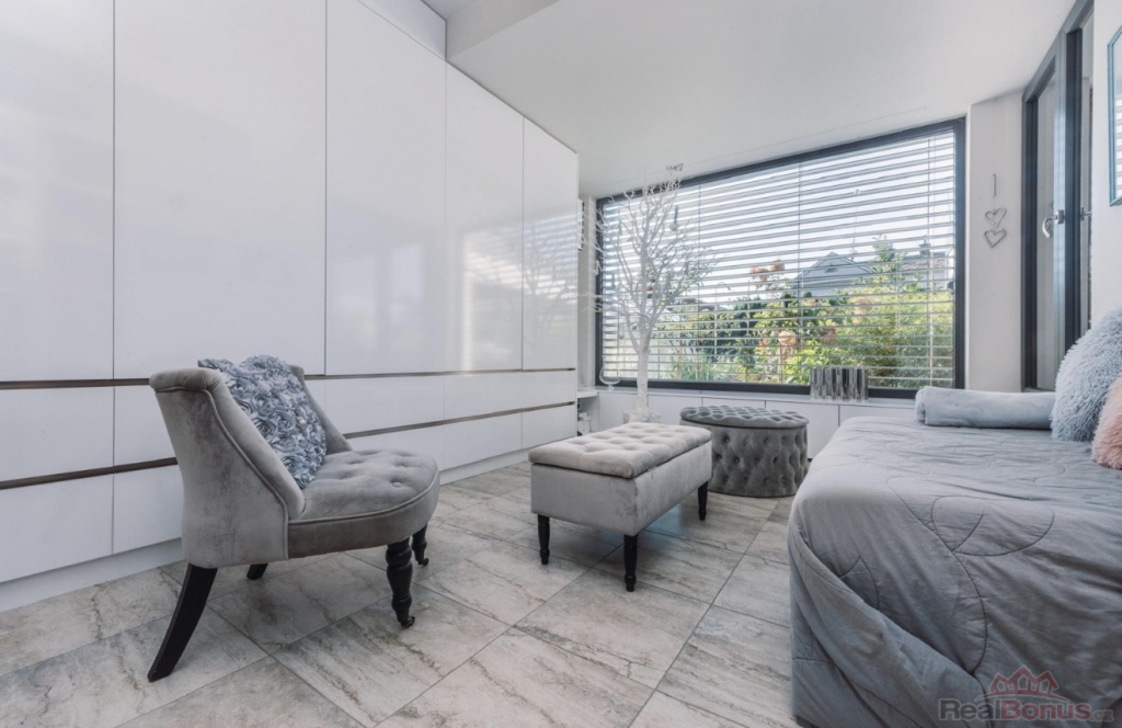 Dům disponuje ložnicí, dalším pokojem využitelným jako dětský pokoj či pracovna, koupelnou se sprchovým koutem a toaletou, technickou a úklidovou místností a samostatnou šatnou. Velké množství vestavných úložných prostor zajišťuje dlouhodobý komfort bez kompromisů.