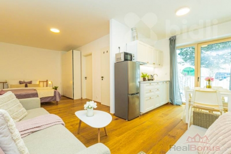Interiér je vybaven podlahovým topením s možností dálkového ovládání, takže si teplotu nastavíte odkudkoliv ještě před příjezdem. Bezpečnost zajišťuje kamerový systém u vstupu do budovy. Díky moderním technologiím a novostavbě má apartmán velmi nízké provozní náklady.