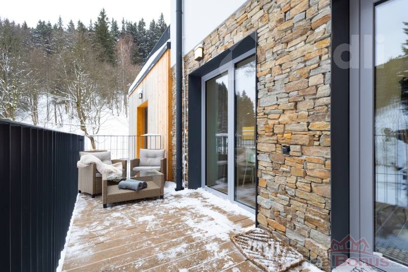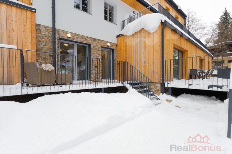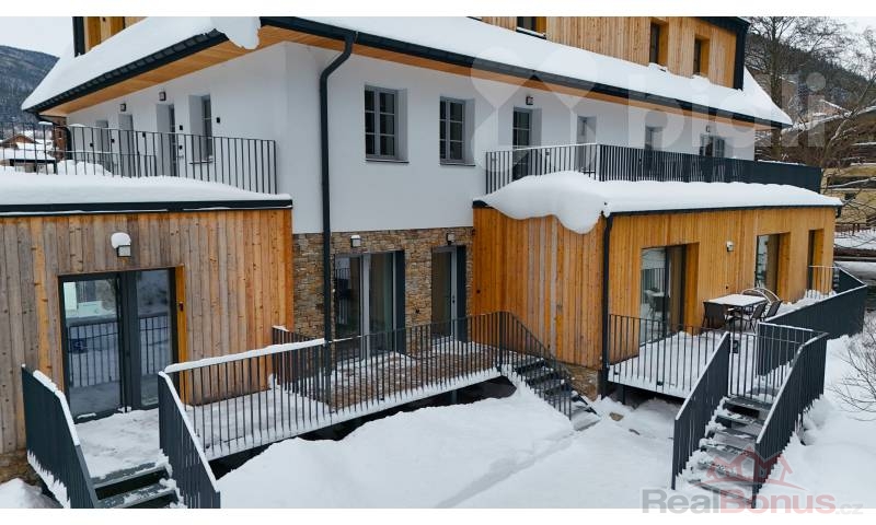 Apartmán je prakticky řešený a nabízí dostatek prostoru pro pohodlné bydlení i víkendové pobyty. Součástí jednotky je terasa, která zve k posezení s výhledem do horského prostředí, dále sklep pro uložení sportovního vybavení a parkovací stání přímo u domu, což je v této lokalitě velkou výhodou.