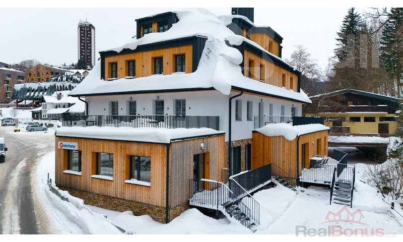 Nabízíme k prodeji moderní apartmán 1+kk o ploše 36 m² se soukromým vchodem, v jedné z nejžádanějších horských lokalit - Pec pod Sněžkou, projekt Apartmány Máj. Jde o pouhé dva roky starý rezidenční projekt, který kombinuje moderní standard, komfort a výborný investiční potenciál v srdci Krkonoš.