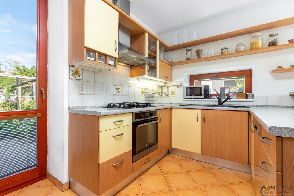 Ohřev vody a vytápění je řešeno přes plynový kondenzační kotel(2019). V obývacím pokoji jsou k využití i krbová kamna. V domě je klimatizace. Na střeše jsou betonové tašky. Podlahy v domě - dubové parkety, dlažba a lino. Celková rozloha pozemku včetně RD je 627 m2.