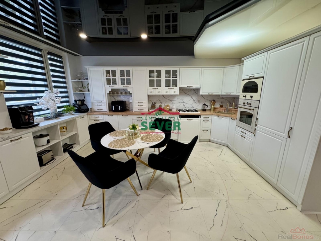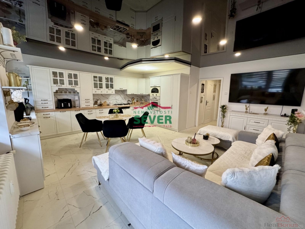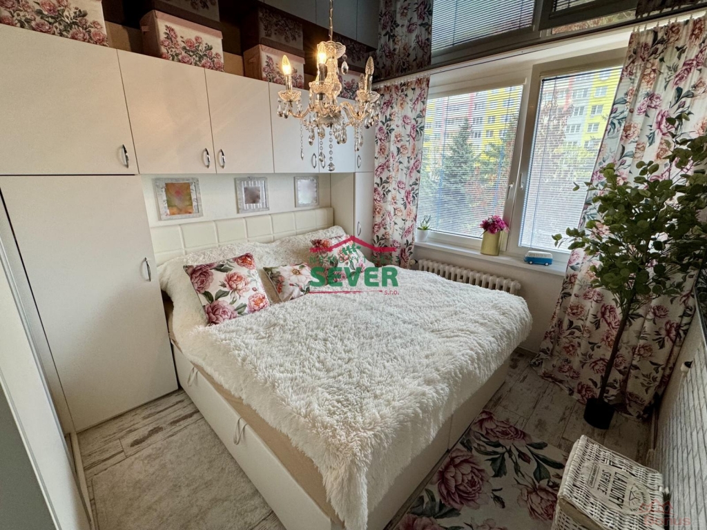 Nemovitosti SEVER vám zprostředkují koupi bytové jednotky s dispozicí 3+1 se zasklenou lodžií v osobním vlastnictví v Mostě v ul. Františka Malíka. Byt s výměrou 68 metrů čtverečních se nachází v přízemí panelového domu s výtahem v klidné části města. Byt prošel nákladnou rekonstrukcí a skládá se z předsíně, dvou ložnic, společně řešené koupelny s toaletou a obývacího pokoje propojeného s kuchyňskou částí a vstupem do zasklené lodžie. Byt prošel nákladnou rekonstrukcí, která zahrnuje elektroinstalaci v mědi, rozvody vody a odpadů, zděné jádro se sociálním zařízením v keramickém obkladu, kuchyňskou linku na míru s vestavěnými spotřebiči, napínané stropy s LED bodovým podsvícením v celém bytě vyjma jedné z ložnic a koupelny, podlahy, interiérové dveře s obložkovými zárubněmi, vstupní dveře, štuky, malby, zatahovací rolety den/noc v obývacím pokoji a kuchyňské části. K bytu náleží komora v chodbě domu. Dům, ve kterém se byt nachází, prošel kompletní revitalizací. Veškerou občanskou vybavenost nalezneme v docházkové vzdálenosti do 10-ti minut od domu. V těsné blízkosti domu je dále spousta zeleně, dětské hřiště, rekreačně-sportovní areál Benedikt a sportovní centrum Tornádo Most. Centrum města je vzdálené 8 minut jízdy automobilem. V případě zájmu zajistíme optimální variantu financování na tuto nemovitost za zvýhodněných podmínek pro naše klienty.