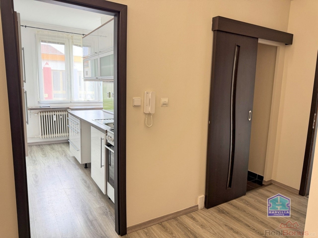 Nabízíme Vám ke koupi zrekonstruovaný slunný byt o dispozici 2+1, který se nachází v 1. patře panelového bytového domu v Sokolovské ulici v Dobřanech. Byt v osobním vlastnictví o výměře 57,4 m2 má vinylové podlahy, plastová okna orientovaná na jižní stranu, nové interiérové dveře, kuchyňskou linku se sporákem, vyzděné jádro se samostatnou koupelnou a samostatným WC. Byt disponuje 2 stejně velkými pokoji a praktickou komorou. Dům byl revitalizován (fasáda se zateplením, plastová okna, stoupačky). Součástí prodeje je sklep v suterénu domu. V blízkosti domu je veškerá občanská vybavenost (obchody, MŠ, ZŠ, úřad, lékaři, pošta atd.). Autobusové a vlakové spojení v dosahu pár minut. Byt je volný okamžitě. Možnost financování hypotečním úvěrem, který Vám rádi vyřídíme. S prohlídkou neváhejte!