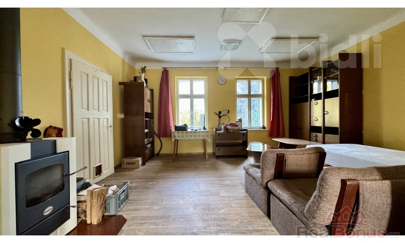 Dispozice domu je 3+kk. Obývací pokoj s kuchyňským koutem a koupelnou je obyvatelný, zbývající dvě místnosti čekají na kompletní rekonstrukci dle vašich představ.