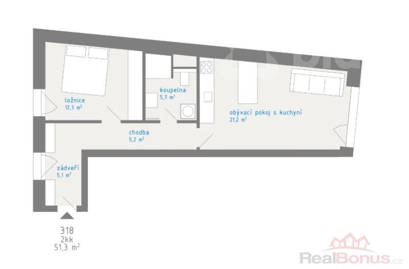 | Dispozice bytu | 2+kk |