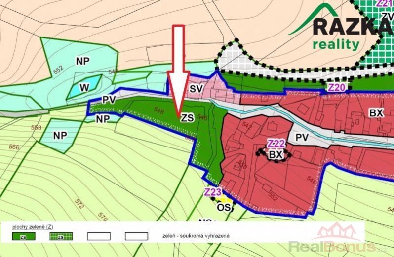 Dle platného územního plánu je pozemek zařazen do kategorie "Zeleň - soukromá vyhrazená". Hlavním využitím pozemku je vyhrazená zeleň v zastavěném území a na zastavitelných plochách nezahrnutá do jiných zastavěných a zastavitelných ploch s rozdílným způsobem využití. Avšak zažádáním o změnu územního plánu je možné kategorii zařazení pozemku změnit.