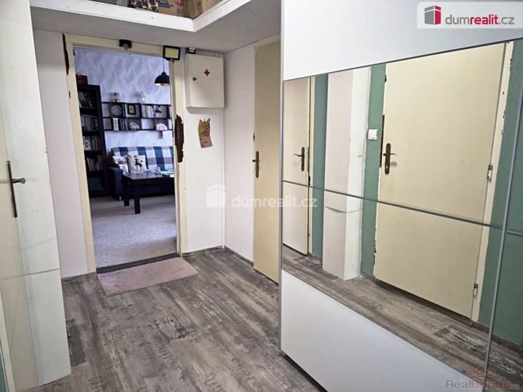 Dispozice bytu je promyšlená a nabízí zajímavé možnosti využití. Z předsíně se dostanete do koupelny, WC, obývacího pokoje a jednoho samostatného pokoje. Na obývací pokoj navazuje další místnost. Kuchyně je přístupná z předsíně a plynule na ni navazuje menší pokoj ideální třeba jako pracovna, dětský pokoj .Byt se nachází ve 4. nadzemním podlaží, tedy v posledním patře, což znamená jediné klid, žádné hluk nad hlavou a pěkný výhled jako bonus. Dům je zateplený a má plastové stoupačky.