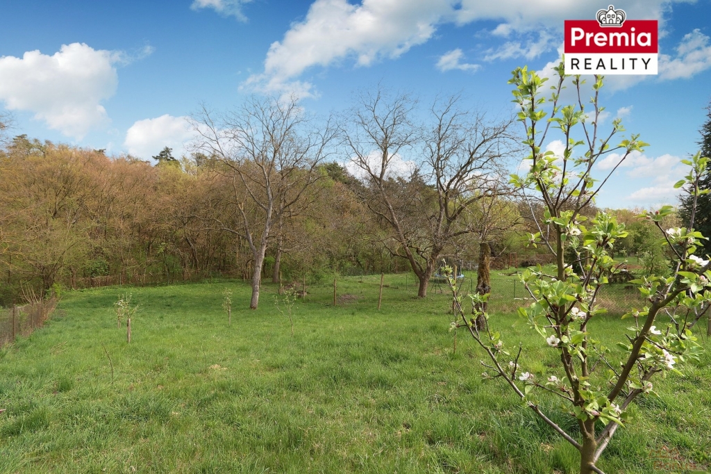 Terén: Převážně rovinatý, kompletně zatravněný pozemek, v zadní části se mírně svažující k lesu s potokem, s velkým množstvím malých i vzrostlých ovocných stromů.