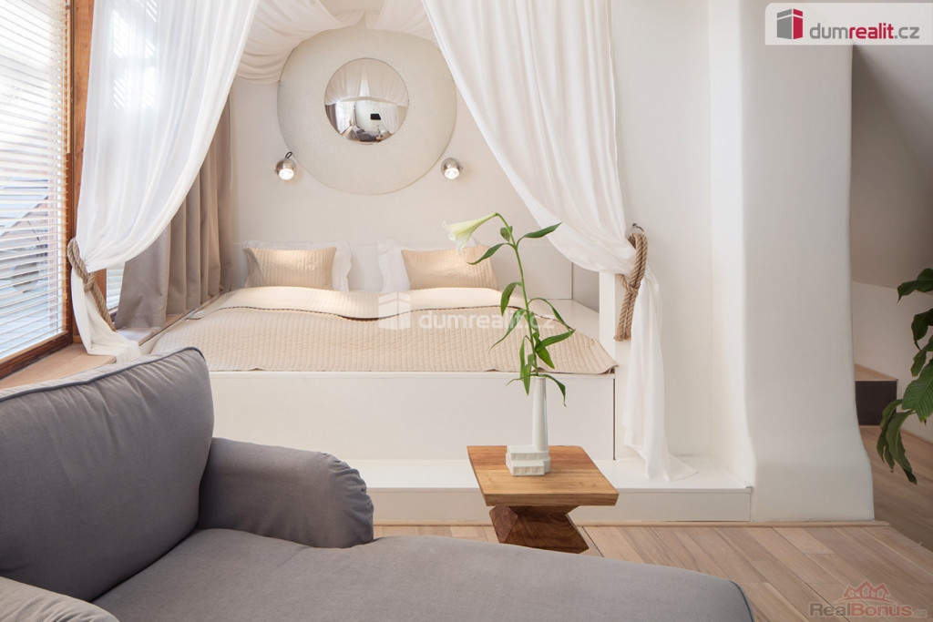, Dovolujeme si Vám zprostředkovat pronájem stylového mezonetového apartmánu Honeymoon 81 s vlastní terasou, který se nachází na Plzeňské ulici v žádané lokalitě Prahy 5. Tento plně zařízený mezonet o dispozici 1+1 a celkové ploše 38 m je situován v 5. patře secesní budovy bez výtahu. Interiér je prakticky rozdělen do dvou podlaží v dolní části se nachází kuchyňská a jídelní zóna s kompletně vybavenou linkou, koupelna s toaletou a předsíň s vestavěnou šatní skříní. Horní patro nabízí romantickou ložnici s manželskou postelí s nebesy (king size) a sofa. Pro maximální komfort je apartmán vybaven klimatizací a TV se satelitním příjmem. Velkou výhodou tohoto pronájmu je nadstandardní servis zahrnutý v ceně, který obsahuje Wi-Fi připojení a pravidelný úklid prováděný jednou týdně, včetně výměny lůžkovin a ručníků. Lokalita nabízí výbornou dopravní dostupnost, zastávka tramvaje U Zvonu je v bezprostřední blízkosti a na stanici metra Anděl dojedete za 5 minut. Byt je vhodný pro 1 až 2 osoby a je připraven jak pro krátkodobé, tak pro dlouhodobé ubytování. V případě dlouhodobého pronájmu činí měsíční nájemné 33 000 Kč, ke kterému se připočítávají služby spojené s užíváním nemovitosti ve výši 5 000 Kč. Majitel požaduje vratnou kauci ve výši 33 000 Kč. Pro krátkodobé zájemce začíná cena při pobytu do jednoho měsíce na 2 270 Kč za noc, při pobytu do jednoho týdne pak od 2 840 Kč za noc. Byt je volný ihned a připraven k nastěhování. Ev. číslo: 654705. Energetický štítek: G
