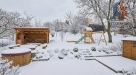 Na pozemku nyní stojí bouda na nářadí a rostou plodící stromy.