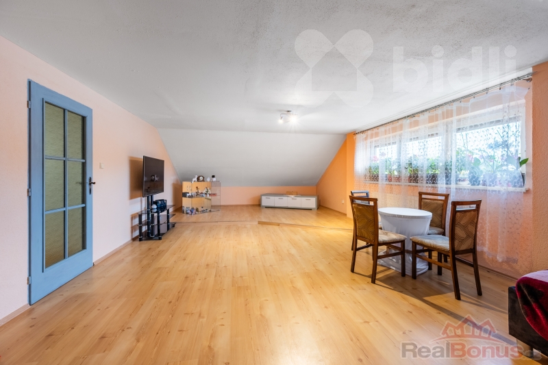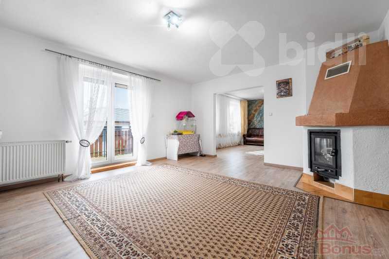 Dominantou domu je útulný obývací pokoj s krbem, který vytváří příjemnou atmosféru zejména v zimních měsících. Dispozice domu umožňuje variabilní uspořádání prostor dle potřeb nového majitele.