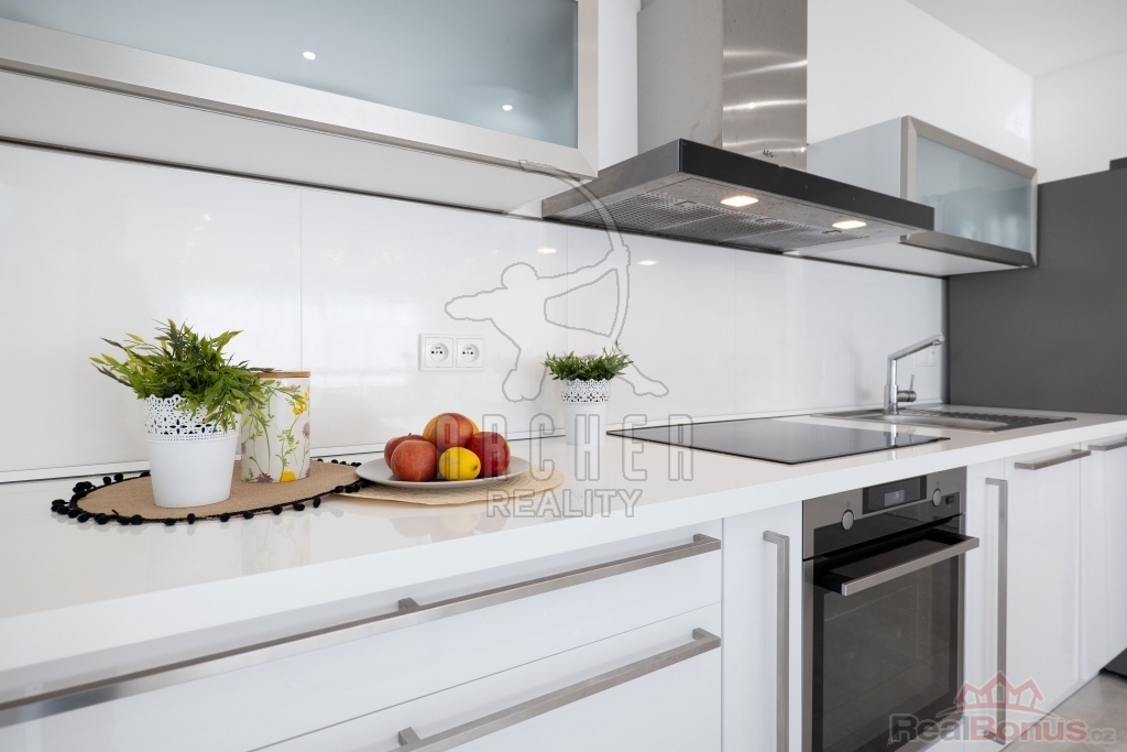 myčka, lednice s mrazákem), s přímým vstupem na krytou zahradní terasu s posezením. Součástí obývacího pokoje je krb na dřevo, dotvářející příjemnou atmosféru domova. 2 dětské pokoje jsou s přímými vstupy na terasu, oddělená ložnice. Nedílnou součástí je prostorná