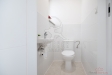koupelna s vanou, sprchovým koutem, toaletou, bidetem, umyvadlem a tepelným žebříkem. Zvláště je pak umístěna spižírna a samostatná toaleta (pro hosty). Podlahová krytina tvořena laminátovou plovoucí podlahou a dlažbou. Nadstandardní interiérové dveře (s magnetickým