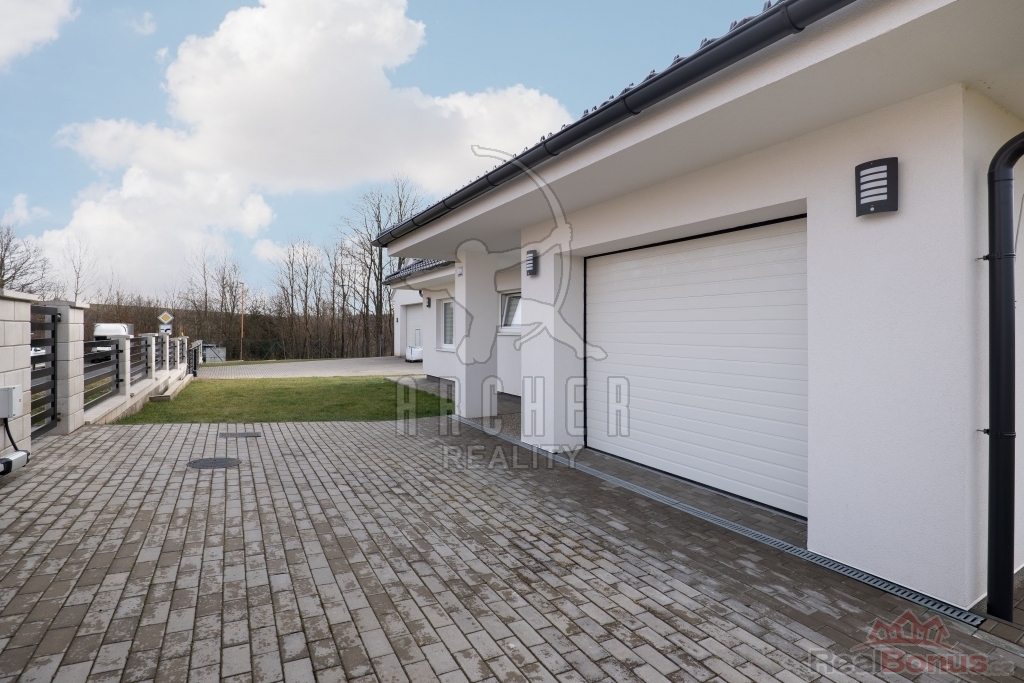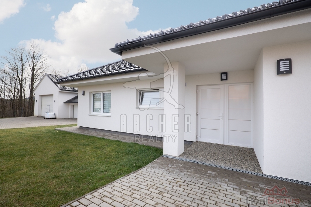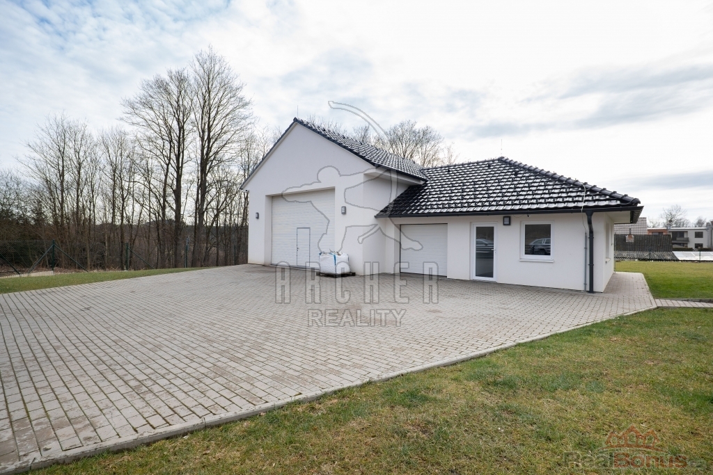 Nabízíme k prodeji RD typu bungalov, 4+kk (128,5 m2) s terasou (52 m2), s garáží (22,9 m2), závětřím (3 m2), extra dvojgaráží (112 m2), celkem 318 m2, na pozemku 1632 m2, Zruč n/ Sázavou. Rodinný dům z roku 2019 je vhodnou volbou pro ty z vás, kteří ocení funkčně a moderně řešený dům s dispozicí 4+kk, pečlivě udržovaný majiteli, k příjemnému bydlení a podnikání, vč. zajištěného soukromí díky umístění v klidné a žádané části Zruče n/S., v zeleni, na dosah centra. Oplocená udržovaná zahrada s terasou a s bazénem se slanou vodou je skutečnou oázou klidu.