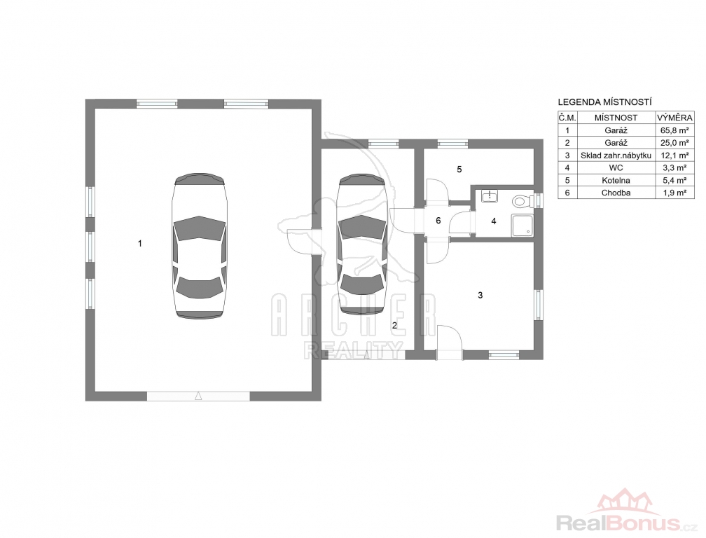 Benefitem je samostatná dvojgaráž s kanceláří, sociálním zařízením (sprcha/ toaleta) a technickou místností. Lze využít jako dílnu nebo sklad. Výška vjezdu 3,5m.