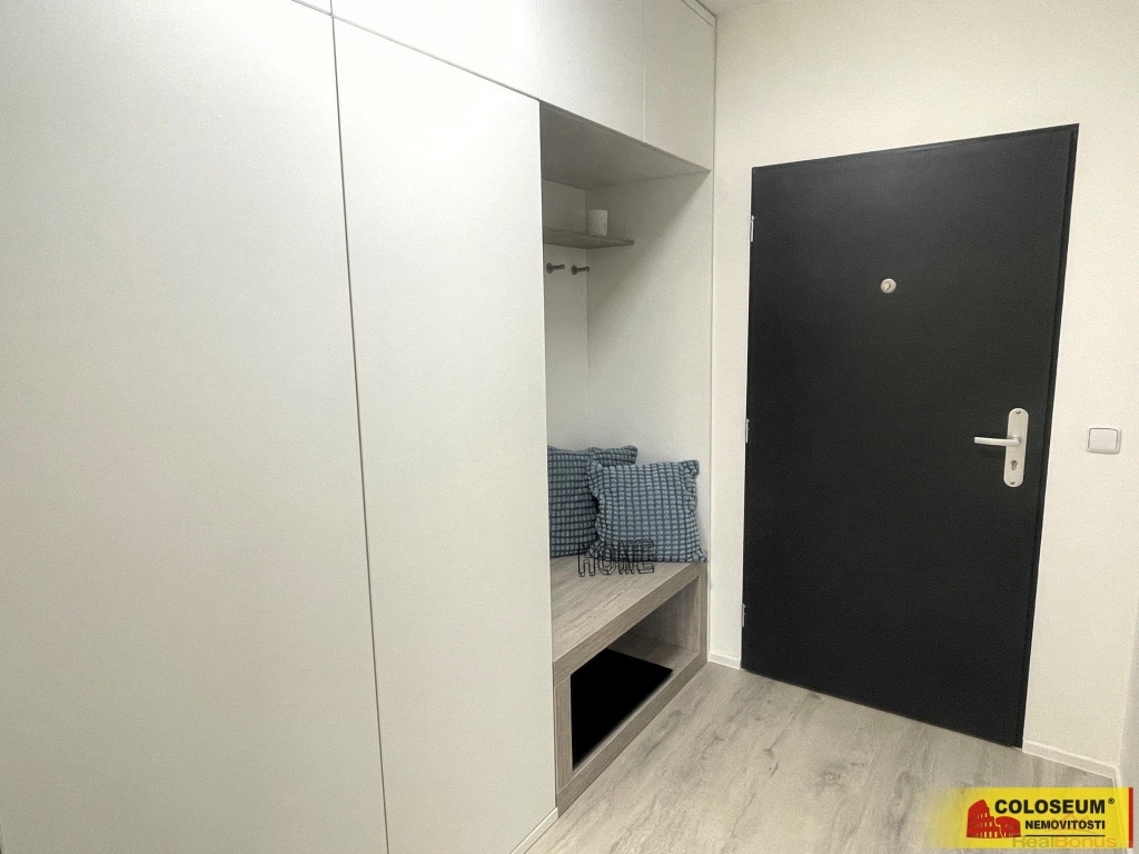 Byt je vybavený kuchyňskou linkou s vestavěnou mikrovlnnou troubou, myčkou, el. troubou, indukční varnou deskou a digestoří. V předsíni jsou velmi prostorné skříně s odkládací věšákovou stěnou a videotelefon. V pokoji jsou na oknech elektrické venkovní žaluzie a plovoucí podlaha ve světlém dekoru. V moderní koupelně je velkoformátový obklad, sprchový kout, toaleta a umyvadla značky Villeroy&Boch, baterie jsou Hansgrohe.