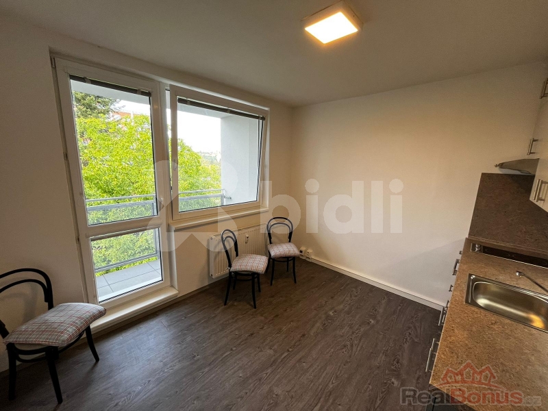 Byt se nachází v 6.NP bytového domu s výtahem a jeho dispozici tvoří vstupní chodba, koupelna se sprchovým koutem a toaletou, kuchyně a ložnice. Kuchyňská linka je vybavena vestavěnou varnou deskou, pečící troubou a digestoří, dále je v bytě lednice s mrazákem, jídelní stůl a židle, v koupelně automatická pračka. K bytové jednotce náleží sklep, parkování zajišťuje přilehlé parkoviště před domem.