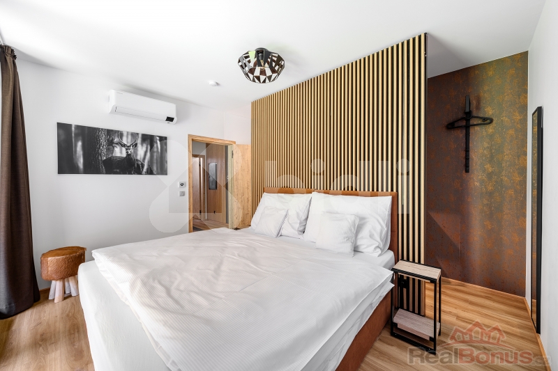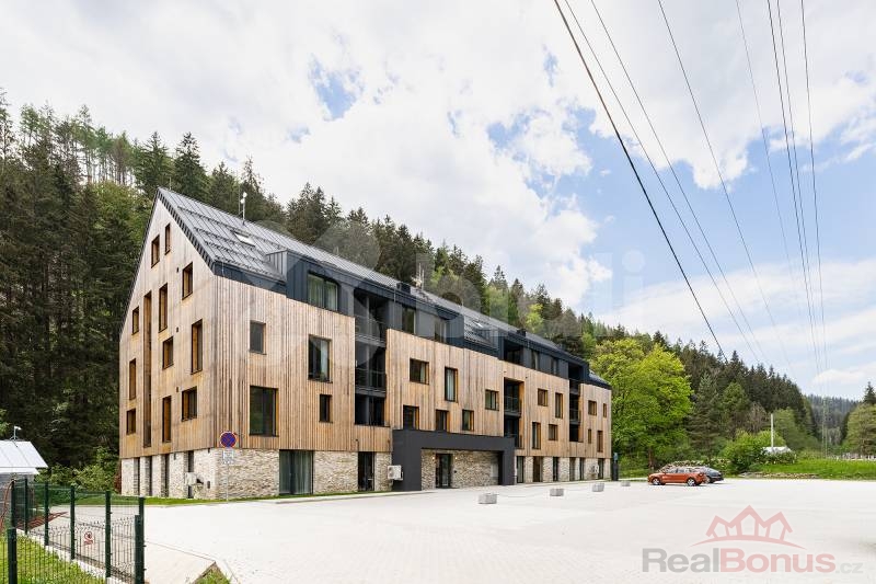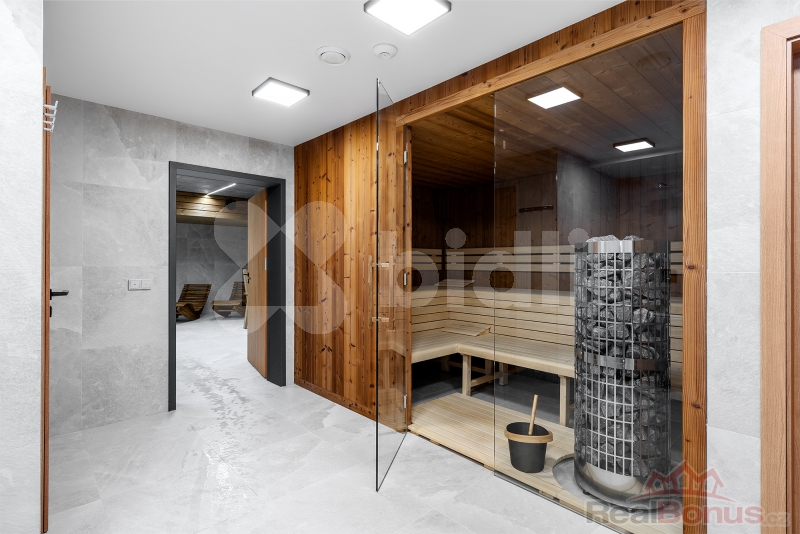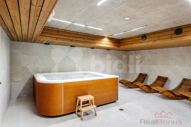 Tento luxusní horský apartmán pro náročné je dokonalým spojením elegance, pohodlí a moderního designu navrhnutý do nejmenšího detailu známým architektem. Užívejte si každý den krásné výhledy na řeku Labe a zelené lesy, relaxujte ve wellnessu se saunou a vířivou vanou, nebo si jednoduše užijte klidný pobyt ve vaší vlastní oáze klidu.