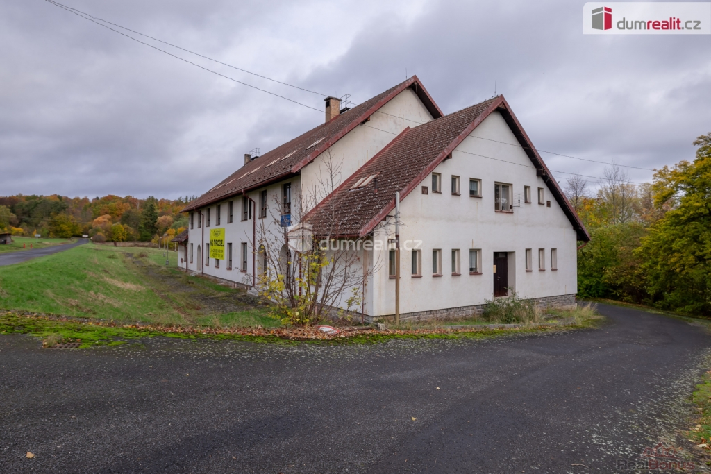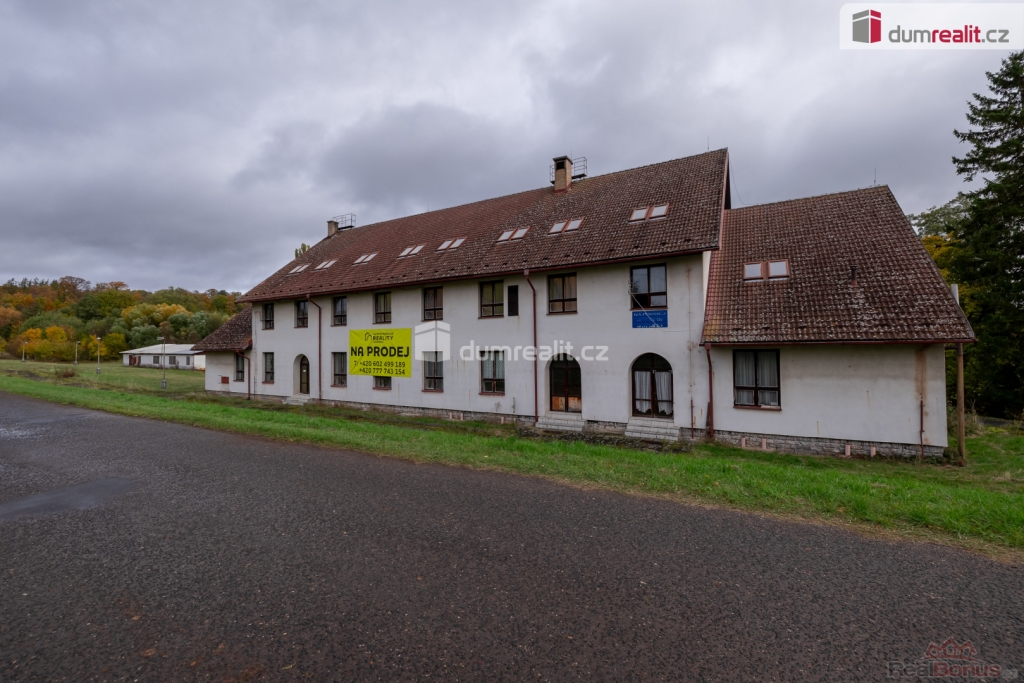 , prodej ubytovacího zařízení na krásném místě obklopené přírodou o celkové výměře pozemku 43.069 m. Objekt se skládá z několika částí. První částí je hlavní budova kde se nachází ubytovací zařízení o podlahové ploše 2.190 m, jedná se o dvoutraktovou budovu se střední chodbou, kde se nachází v 1 NP - recepce, kuchyně, jídelna, sklady, technické zázemí, sociální zařízení. V 2 NP - pokoje, šatny, sociální zařízení, taneční sál s barem. V 3 NP - pokoje, šatny, sociální zařízení. Dohromady se zde nachází 21 pokojů pro ubytování, kapacita pokojů od dvoulůžkových až po čtyřlůžkové pokoje. Celý objekt podsklepený, s vjezdovou bránou pro nákladní vozy, sklepní prostory ve výměře 620 m.