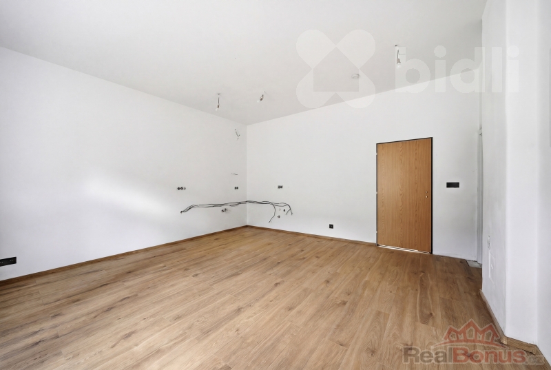 Interiér je ponechán jako "nepopsaný list" - čistý, světlý a připravený k realizaci kuchyňské linky i vybavení přesně podle vašeho vkusu.