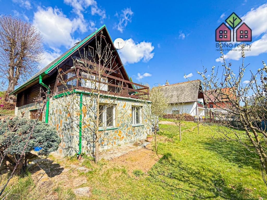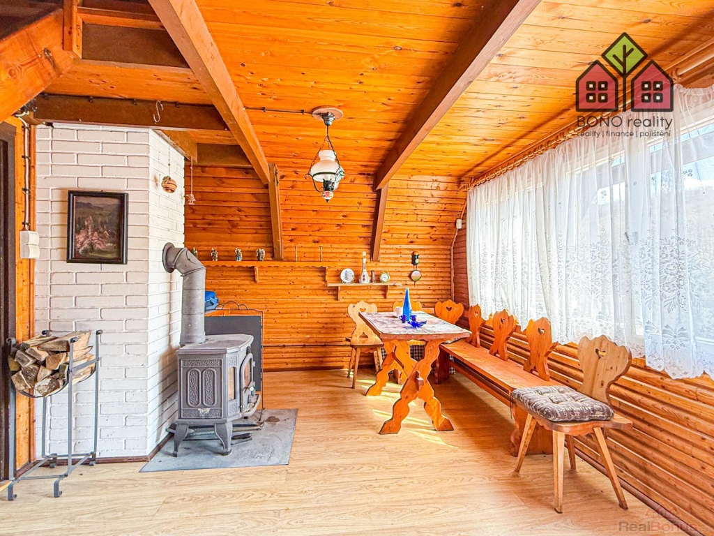 BONO reality Vám ve výhradním zastoupení vlastníka nabízí ke koupi stylovou chatu k celoročnímu užívání se zahradou, pergolou a garáží, která se nachází v obci Velemín, v nádherné části obce Oparno.