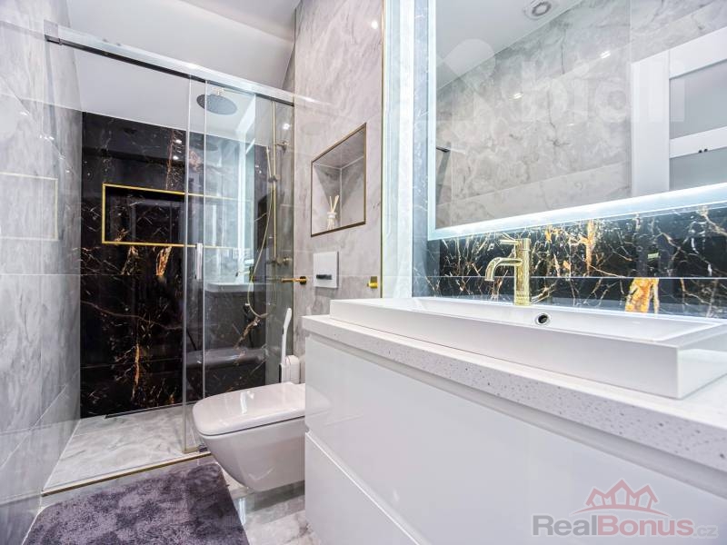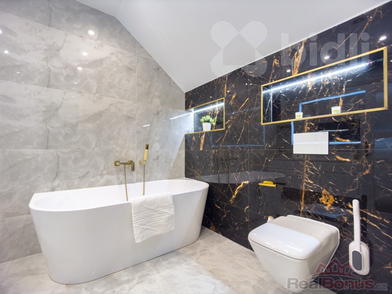 - mramorové prvky, dekorativní nástěnné lišty, vkusné stropní osvětlení ve všech částech domu