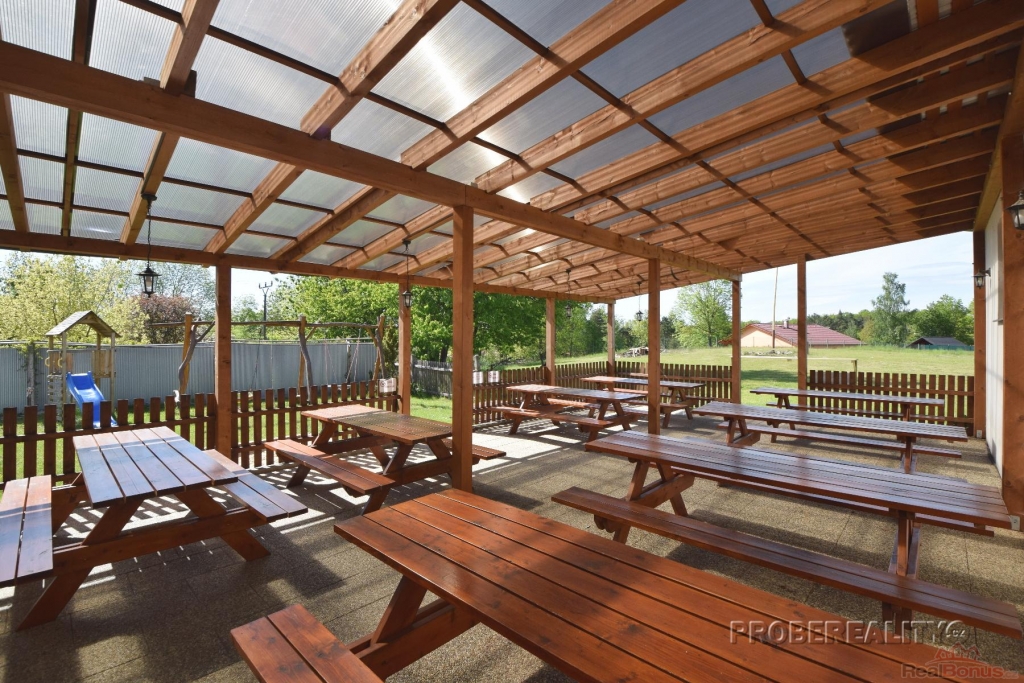 Venkovní zahrádka: 80 míst s dětským hřištěm a možností grilování (ideální pro letní provoz).