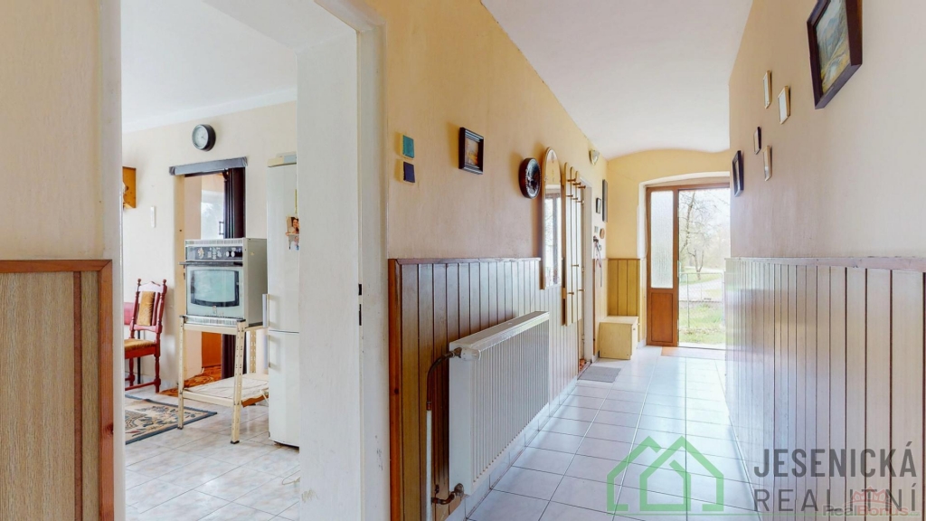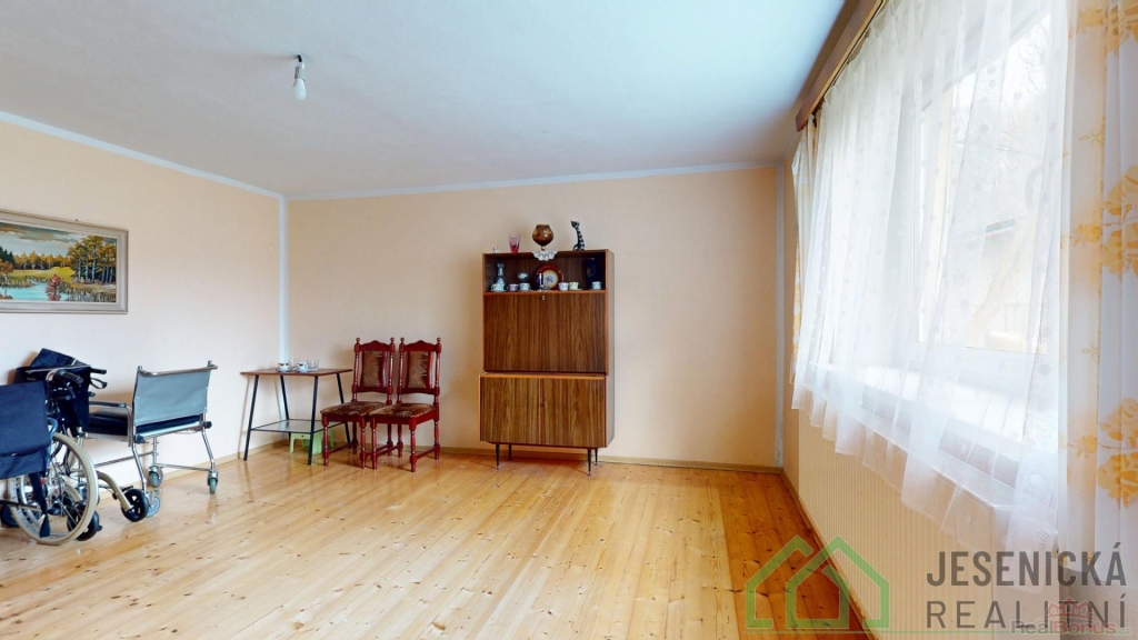 Realitní kancelář Jesenická realitní nabízí v zastoupení majitele k prodeji rodinný dům se zahradou, situovaný v klidné části obce mimo hlavní komunikaci. Dům je aktuálně součástí sousední nemovitosti, přičemž po prodeji dojde k jeho oddělení. Úprava pozemku kolem domu bude řešena dohodou s majitelem.