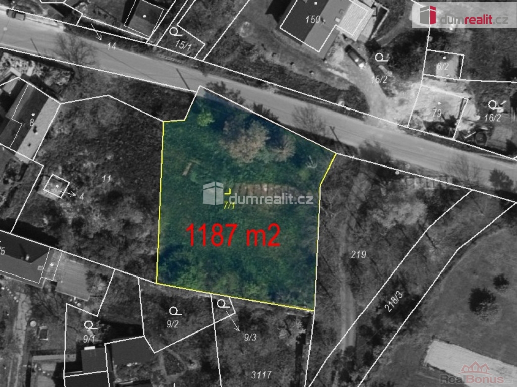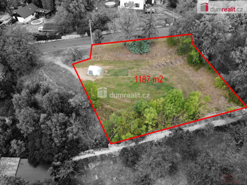 Rovinatý pozemek v klidné části a na konci obce je o rozloze dle KN 1187 m přístupný z hlavní komunikace.