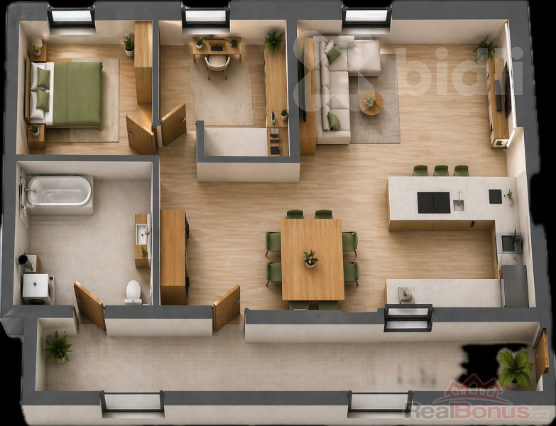 | Dispozice bytu | 3+kk |