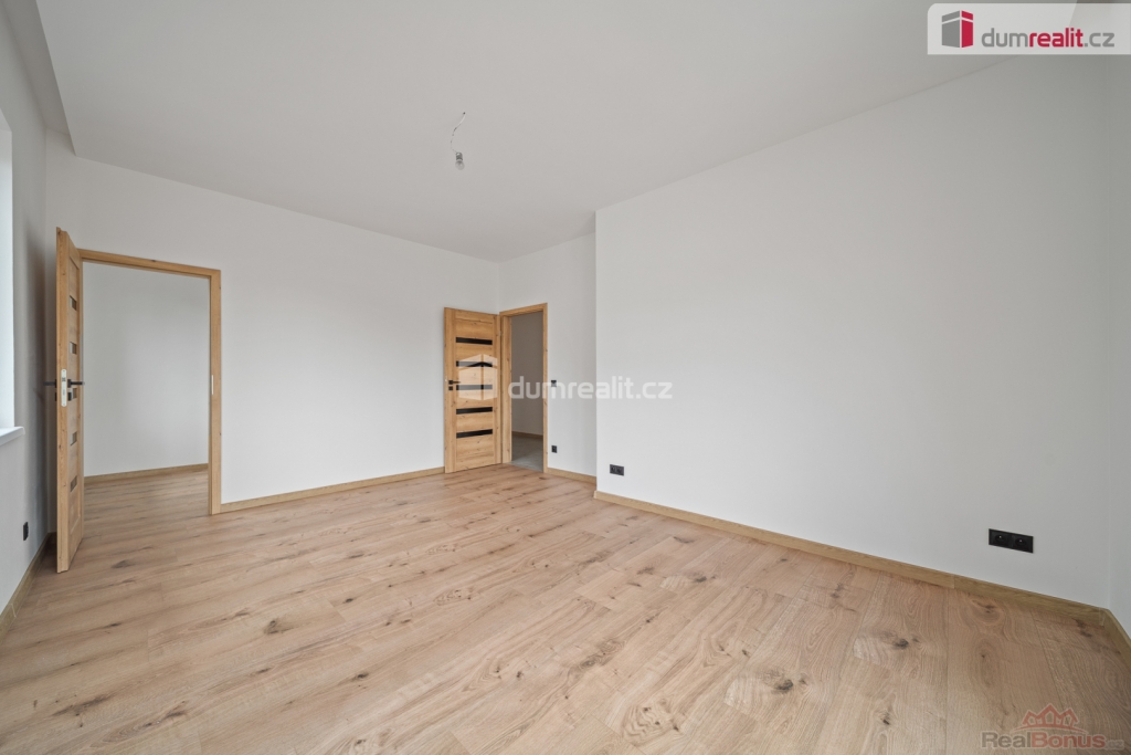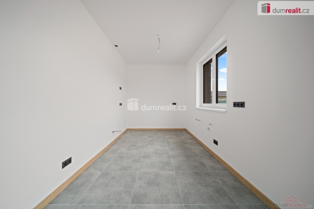 Dispozičně je dům řešen jako prostorný bungalov s dominantním obytným prostorem a kuchyňským koutem, který tvoří hlavní centrum domu. Dále jsou k dispozici samostatné pokoje, koupelna a technické zázemí. Nemovitost je připravena k dokončení interiéru dle individuálních představ nového majitele, což umožňuje přizpůsobení finální podoby bydlení přesně podle vlastního vkusu a potřeb.