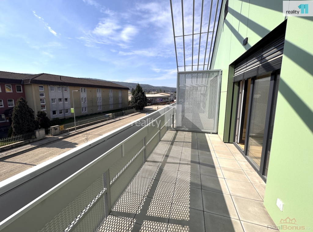 Nezařízený byt, s výměrou 53.7 m, je dispozičně rozdělen na vstupní chodbu, ze které se vchází do slunného obytného pokoje, kde je nová kuchyňská linka na míru (varná deska, trouba, digestoř, myčka, lednice po dohodě), se střešními okny a vstupem na prostorný balkon (výměra 11.4 m). Samostatná ložnice, koupelna s vanou a toaletou. Do chodby byla instalována vestavná skříň ve stejném designu jako je kuchyně. V celém bytě použity kvalitní, moderní materiály v neutrálních barvách - dřevěné podlahy, rekuperace, podlahové topení v koupelně, klimatizace. Velkou výhodou bytu je úložný prostor přístupný sklápěcími schody přímo v bytě, dále velký zděný sklep (2.1 m) a vlastní parkovací stání se závorou.