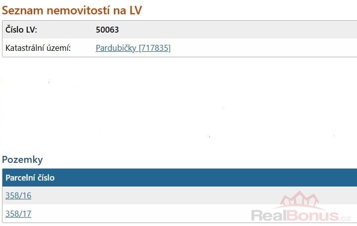 Parc. č. 358/17 výměra 159 m2, orná půda, k.ú Pardubičky.