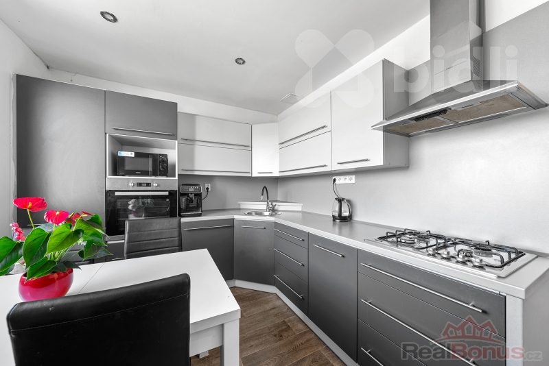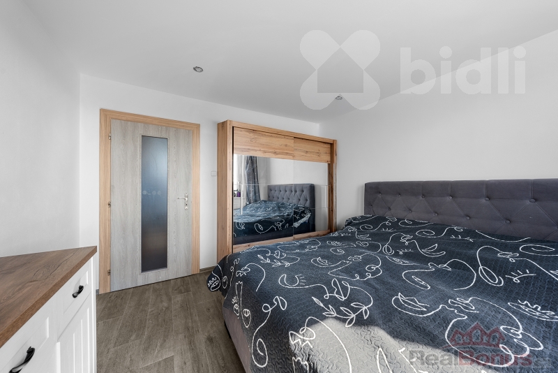 Tenhle byt si na nic nehraje. Prostě funguje. Je po celkové rekonstrukci, působí čistě, svěže a hlavně normálně, ne jako katalogová kulisa, ale jako místo, kde se dá bez kompromisů bydlet. Kuchyň je praktická, obývák má příjemnou atmosféru, pokoje jsou světlé a vzdušné a celé to drží pohromadě tak, že nic neruší. Páté patro dělá svoje, je tu víc světla, víc klidu a hezčí výhled. Lodžie je bonus, který člověk rychle začne brát jako samozřejmost, sklep zase řeší to, co doma překáží. A pak je tu věc, která zní nenápadně, ale ve finále je znát dost, poslední dům v řadě. Méně ruchu, víc prostoru kolem sebe. Hřiště hned před domem potěší rodinu s dětmi a nízké měsíční náklady zase každého, kdo chce mít hezké bydlení, ale nechce na něm zbytečně vykrvácet.