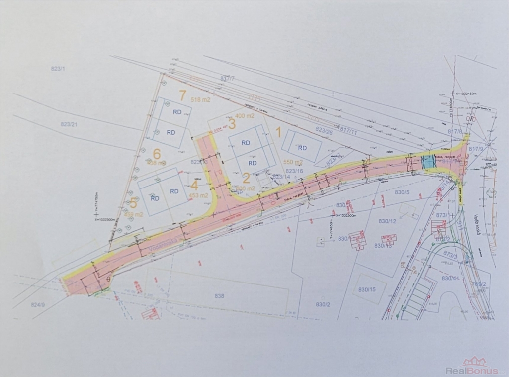 Pozemek bude dle připravovaného záměru možné rozdělit až na 7 samostatných parcel. Na šesti z nich půjde realizovat výstavbu tří plnohodnotných dvojdomů ? nikoliv bytových jednotek, ale samostatných rodinných domů, každý s vlastním číslem popisným, vlastním pozemkem a samostatnými přípojkami vody a elektřiny. Navržené dělení není zatím závazné a lze jej upravit dle individuálních představ budoucího majitele. V případě dělení pozemku je nutné vybudování sítí a výstavba přístupové komunikace.