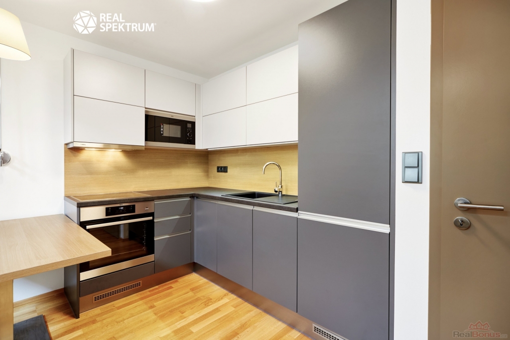 Byt se nabízí plně vybavený, kde máte k dispozici kuchyňskou linku se spotřebiči (varná deska, trouba, digestoř, mikrovlnka, myčka lednice s mrazničkou), jídelní stůl a židle, obývací prostor s pohovkou, konfe. stolkem a tv stěnou.