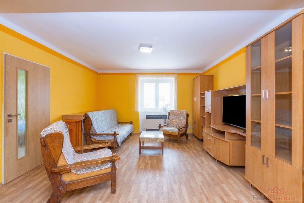 Pronájem je včetně vybavení (myčka nádobí, lednička, pračka, sporák, jídelní stůl se židlemi, obývací stěna, křesla, pohovka, botník, věšák, šatní skříň).