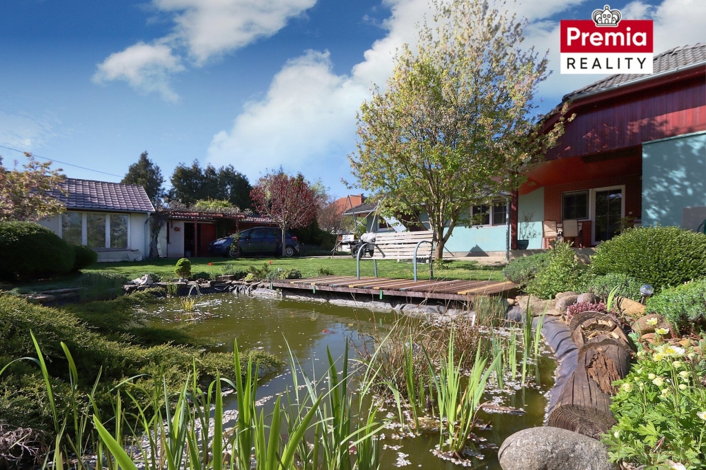 Pozemek o celkové výměře 943 m2 nabízí dostatek soukromí i prostoru. Zahrada je rovinatá a pečlivě udržovaná. Najdeme zde okrasné jezírko, travnatou plochu, venkovní posezení ke grilování, dílnu, dřevník a plechový sklad. Zahrada je celooplocená, zajišťující klid a bezpečí.