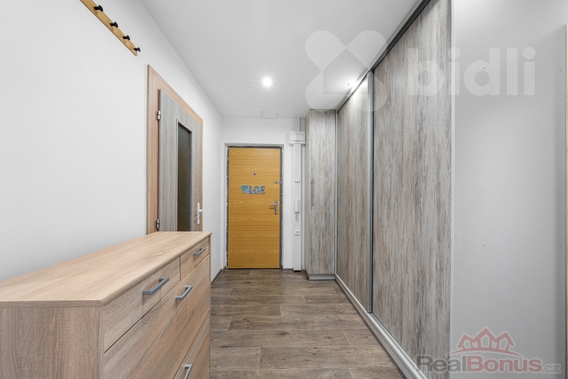 Tenhle byt si na nic nehraje. Prostě funguje. Je po celkové rekonstrukci, působí čistě, svěže a hlavně normálně, ne jako katalogová kulisa, ale jako místo, kde se dá bez kompromisů bydlet. Kuchyň je praktická, obývák má příjemnou atmosféru, pokoje jsou světlé a vzdušné a celé to drží pohromadě tak, že nic neruší. Páté patro dělá svoje, je tu víc světla, víc klidu a hezčí výhled. Lodžie je bonus, který člověk rychle začne brát jako samozřejmost, sklep zase řeší to, co doma překáží. A pak je tu věc, která zní nenápadně, ale ve finále je znát dost, poslední dům v řadě. Méně ruchu, víc prostoru kolem sebe. Hřiště hned před domem potěší rodinu s dětmi a nízké měsíční náklady zase každého, kdo chce mít hezké bydlení, ale nechce na něm zbytečně vykrvácet.