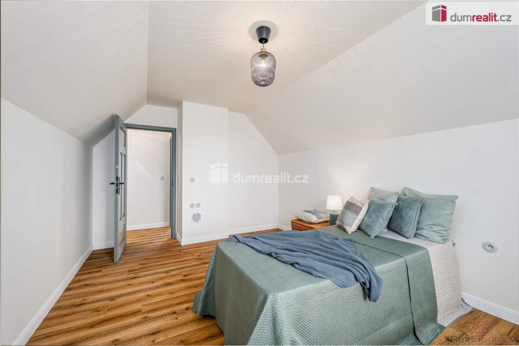 Podkroví nabízí ideální zázemí pro děti, hosty nebo klidnou pracovnu.