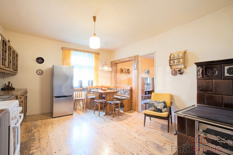 Upozornění: Tato nabídka je rezervována konkrétním zájemcem a v rezervační lhůtě není k dispozici! Dovolujeme si vám nabídnout stavbu 3+1 o velikosti 145m2 pro rodinnou rekreaci vhodnou k trvalému bydlení. Stavba je z části podsklepená, jinak izolovaná, a procházela, během let rekonstrukcí. Nová elektřina, veškeré rozvody topení v mědi. Vytápění je řešeno kachlovými kamny s rozvody do ústředního topení, v některých pokojích navíc přímotopy, nebo kamínka na tuhá paliva. V domě jsou nová dřevěná okna. Velká koupelna s wc a vanou a prostorem na pračku a sušičku, bojler 80l, a elektrický přímotop. V prostorné kuchyni jsou funkční kachlová kamna, sporák na elektřinu, plyn v domě není a na kuchyň navazuje prostorný obývací pokoj. V pokojích jsou vyvedeny i přípojky na přímotopy kdyby někdo chtěl využít. V domě jsou dřevěné podlahy a dlažba. V půdním prostoru je možnost vybudovat další krásné pokoje. Dům je napojen na obecní vodovod, je zde i kopaná studna. Střešní krytina je Betternit. Dům má energetickou třídu D. Příjezdová cesta k domu je obecní. K domu patří pozemek 227m2. Ostatní pozemky o velikosti 1895m2 jsou v pronájmu od obce za 1kč za metr ročně a pozemkového fondu za poplatek. Na zahradě je ještě zahradní domek a kůlna. Komíny nejsou vyvložkovaný, ale revize doložíme. Doporučuji prohlídku, na které můžeme probrat i případné financování. Energetický štítek - PENB je D.