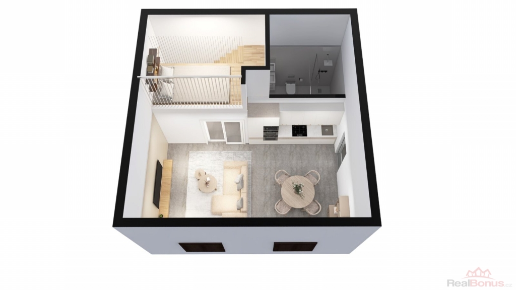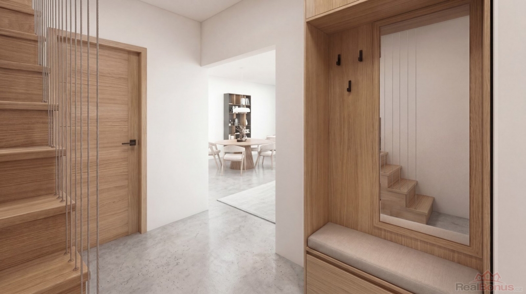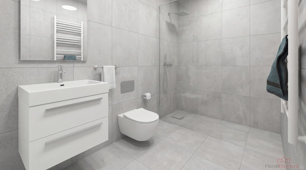 Nabízená jednotka se nachází v přízemí domu. Její rozloha je celkem 46 m2. V této rozloze je započítán i zajímavě řešený prostor pro spaní, díky kterému se v jednotce pohodlně ubytuje i čtyřčlenná rodina. V kupní ceně je zahrnuto kompletní dokončení bytové jednoty, a to včetně kuchyňské linky s vestavěnými spotřebiči, skříní v předsíni a obývací stěnou. Koupelna bude vybavena walk-in sprchou s odtokovým žlábkem, WC, skříňkou s umyvadlem a osvětleným zrcadlem. Podlaha celého bytu (kromě koupelny) bude opatřena kvalitním vinylem.