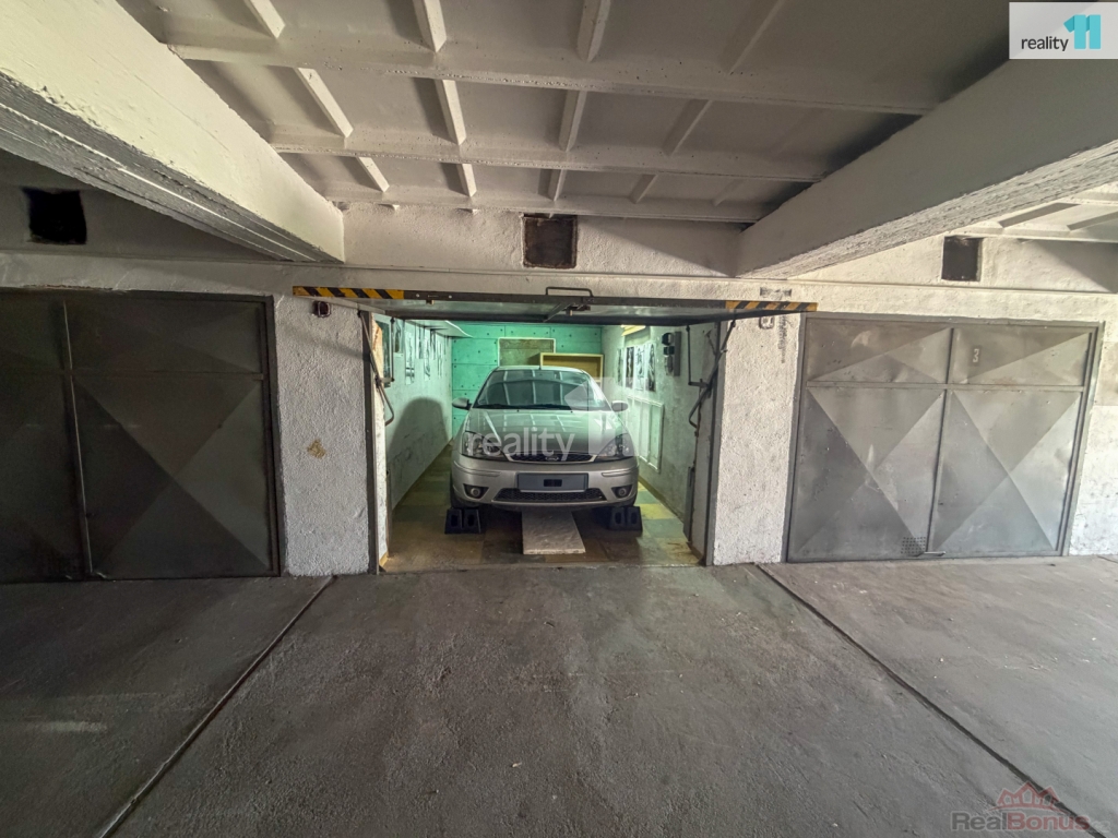 Garáž má rozměry 5,3 m x 2,8 m a jedná se o uzavřený samostatný prostor s vlastními vraty, což poskytuje větší bezpečnost i soukromí než běžné garážové stání.