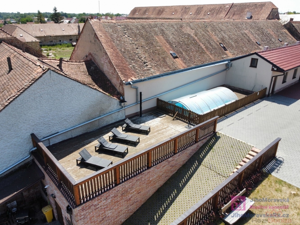 Součástí areálu je vinárna s barem, vinný sklípek, venkovní posezení pod pergolou, bazén, kolárny a parkování přímo u objektu.