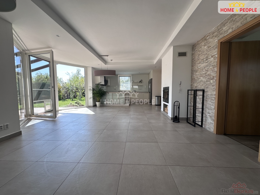 velkorysý obývací prostor s přímým vstupem na terasu a plně vybavená kuchyně