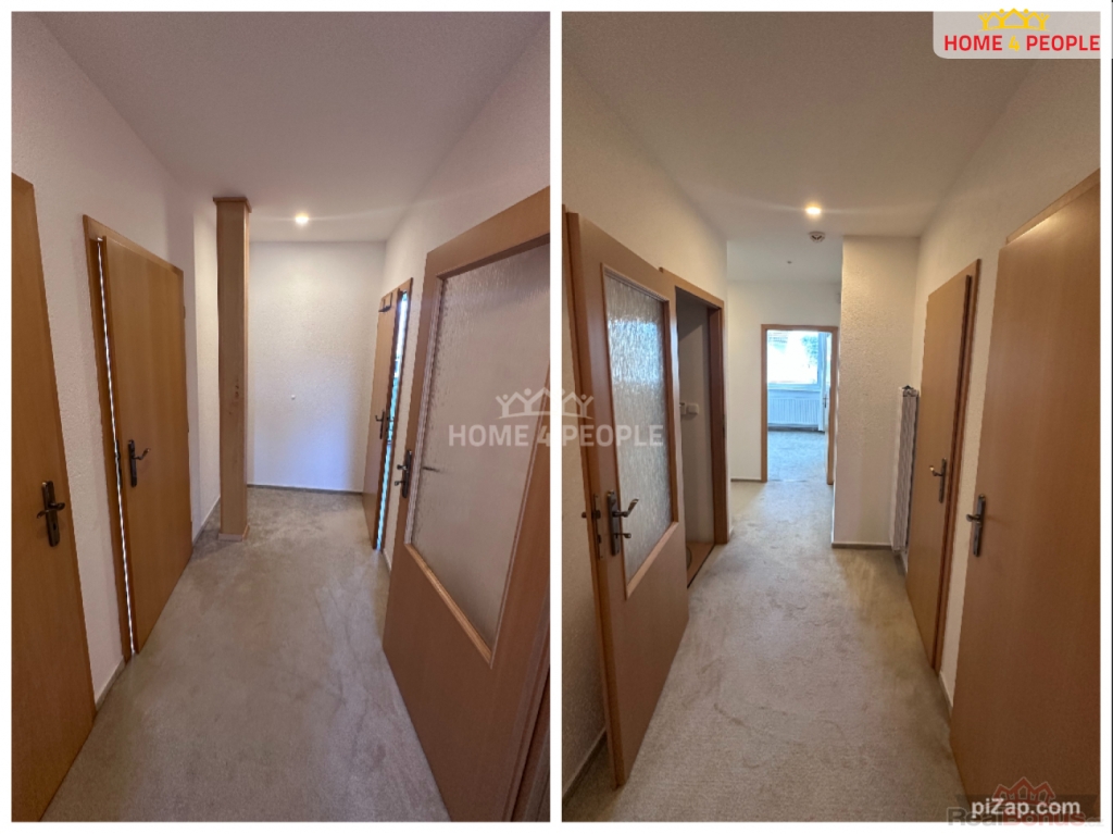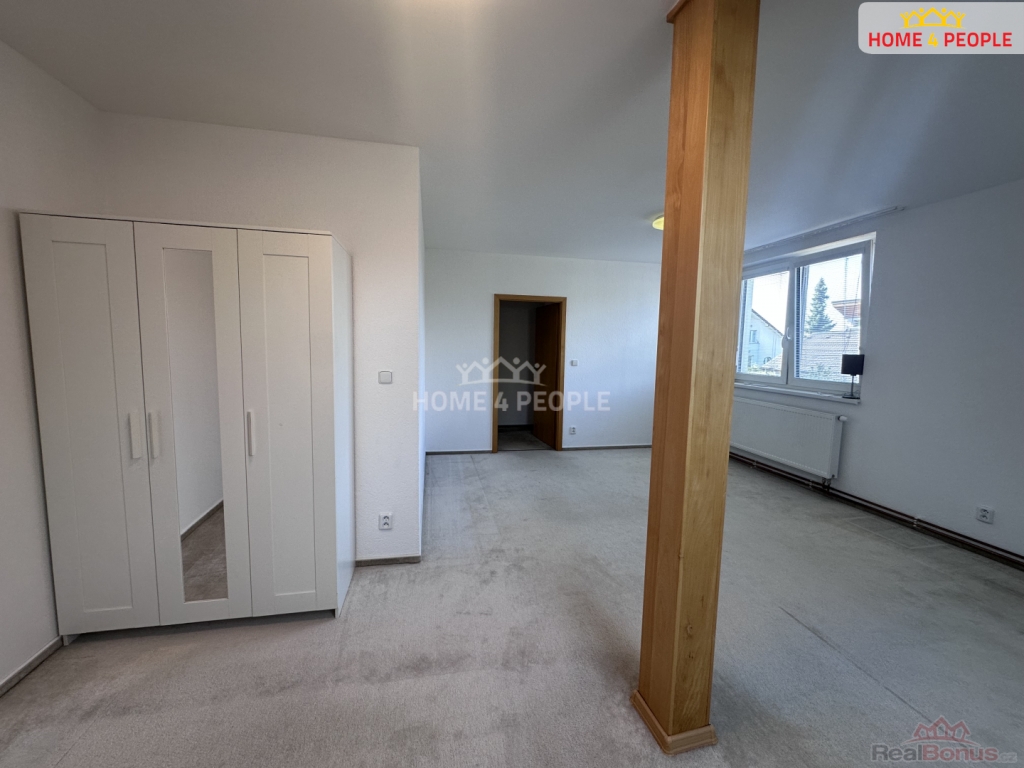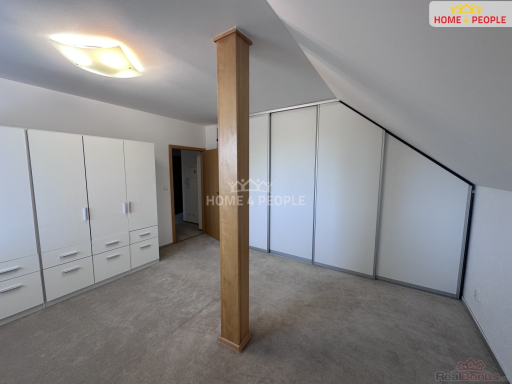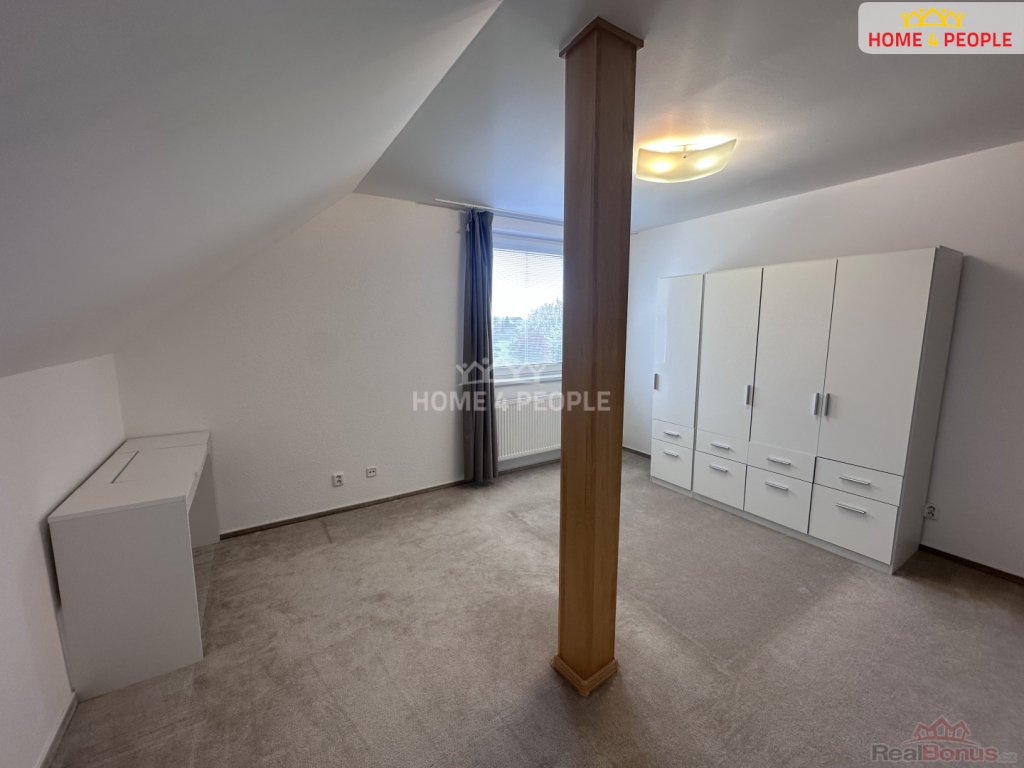 3 pokoje, komora, koupelna (sprcha, vana, 2 umyvadla, WC), vstup na půdu