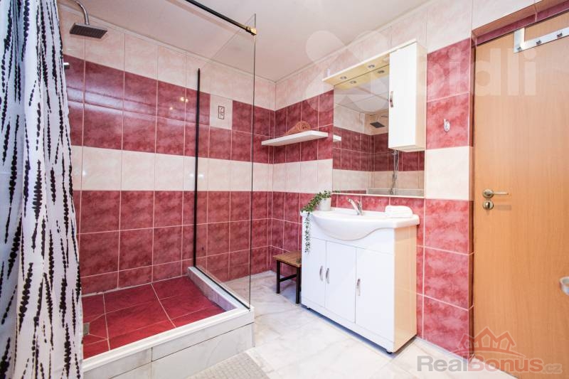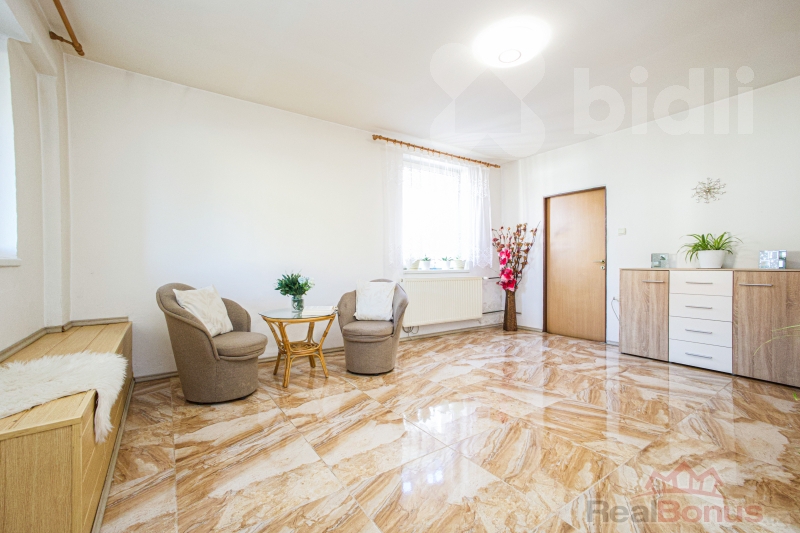 Přízemí domu má dispozici 3+1 velká vstupní hala, kuchyň, obývací pokoj, ložnice, koupelna a další místnost s koupelnou - ideální pro hosty. Většina domu je po rekonstrukci, jedna místnost horního patra čeká na dokončení - možnost využití jako dětský pokoj, další ložnice nebo kuchyň. Dům tak lze upravit na dvougenerační bydlení, či rozdělit na dvě bytové jednotky.